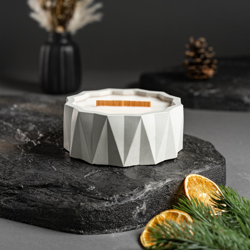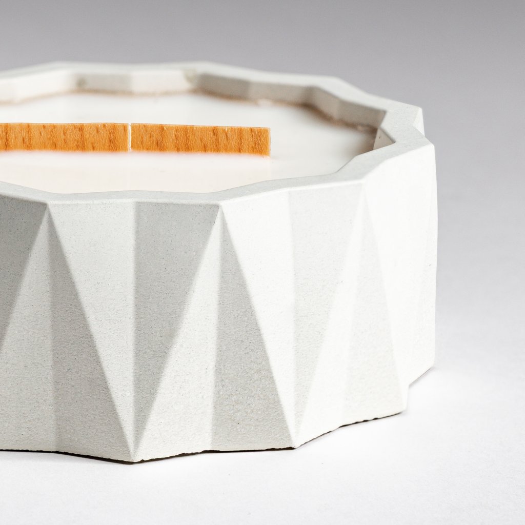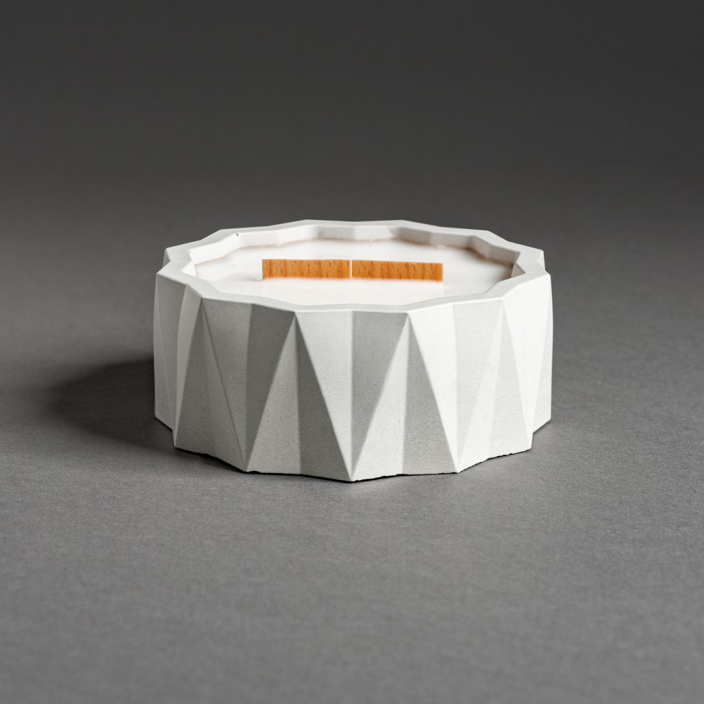 Každý kus je ručně vyroben z vlastního receptu přírodního pohledového betonu, jehož surová elegance vyniká v každém interiéru. Nabízíme ji ve dvou variantách – v přírodním šedém betonu a v luxusní bílé barvě. Doplňuje ho ekologická vosková směs z kokosového a sójového vosku – bez parafínu, bez toxinů, bez kompromisů. Dřevěný knot dodává ohni zvuk praskajícího krbu. Design podtrhuje minimalistickou krásu. Možnost opětovného doplnění mění svíčku v trvalý rituál.