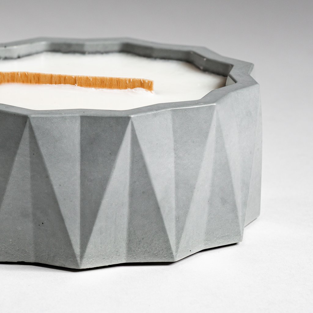 Každý kus je ručně vyroben z vlastního receptu přírodního pohledového betonu, jehož surová elegance vyniká v každém interiéru. Nabízíme ji ve dvou variantách – v přírodním šedém betonu a v luxusní bílé barvě. Doplňuje ho ekologická vosková směs z kokosového a sójového vosku – bez parafínu, bez toxinů, bez kompromisů. Dřevěný knot dodává ohni zvuk praskajícího krbu. Design podtrhuje minimalistickou krásu. Možnost opětovného doplnění mění svíčku v trvalý rituál.