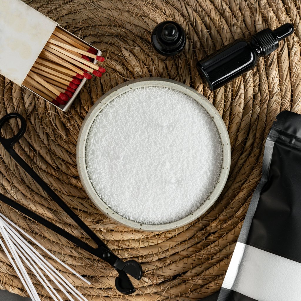 Knot před zapálením zastřihněte na délku cca 5 mm nad úrovní vosku, aby plamen hořel stabilně a nedýmil. - Použití s vůní nebo bez: Pokud jste si zakoupili sypaný vosk již s vůní, nepřidávejte žádné další esence – svíčka je připravena k použití. V případě, že používáte čistý vosk bez vůně, můžete přidat pár kapek vonné esence kolem knotů ještě před zapálením.
